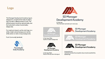 Manager Development Academy logo design and guidelines.