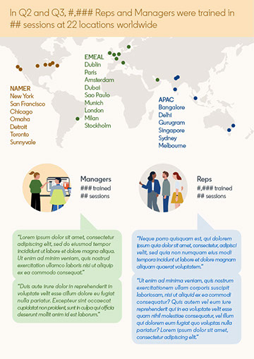 An infographic emailed to sales representatives and managers globally, giving the statistics of a training event.